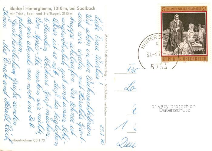 13311623 alte Postkarte Hinterglemm Saalbach mit Trist Saal und Staffkogel postalisch gelaufen Erhaltung siehe scans [WerneD78] KatCode: 11390