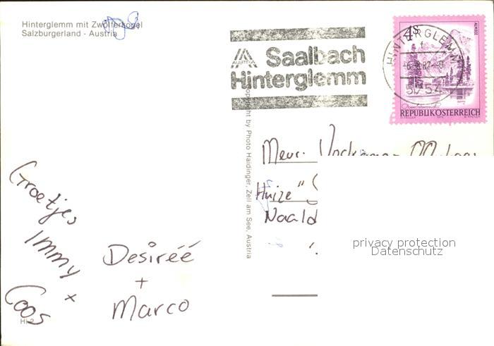 72093117 alte Postkarte Hinterglemm Saalbach mit Zwoelferkogel postalisch gelaufen Erhaltung siehe scans KatCode: 11390