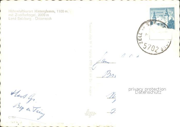 72094785 alte Postkarte Hinterglemm Saalbach mit Zwoelferkogel Trachtenmaedchen postalisch gelaufen Erhaltung siehe scans KatCode: 11390