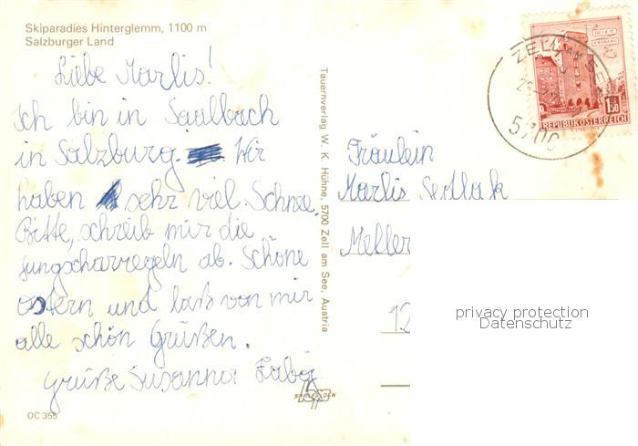 73861823 alte Postkarte Hinterglemm Saalbach Panorama postalisch gelaufen Erhaltung siehe scans [WerneD78] KatCode: 11390