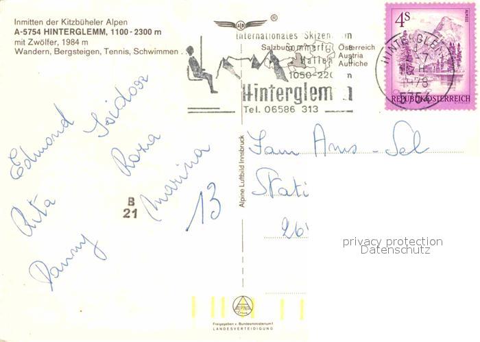 72618625 alte Postkarte Hinterglemm Saalbach Panorama mit Zwoelfer Kitzbueheler Alpen Fliegeraufnahme postalisch gelaufen Erhaltung siehe scans [FriedD77] KatCode: 11390