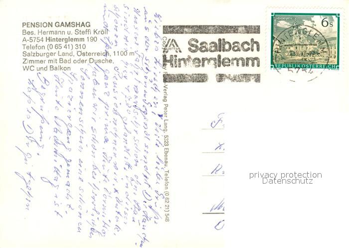 73117976 alte Postkarte Hinterglemm Saalbach Pension Gamshag postalisch gelaufen Erhaltung siehe scans [KathaD81] KatCode: 11390