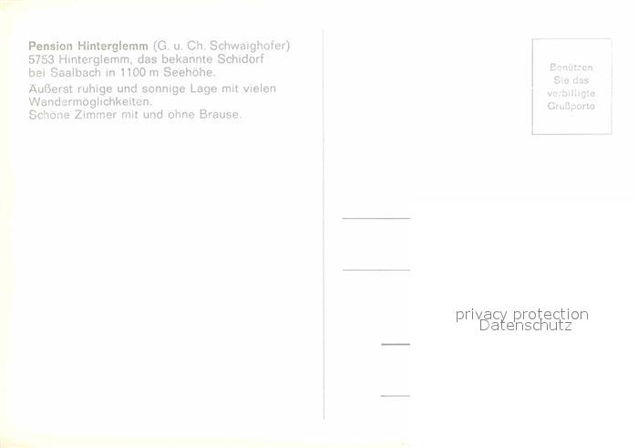 72626757 Hinterglemm Saalbach Pension Hinterglemm postalisch nicht gelaufen Erhaltung siehe scans [FriedD77] KatCode: 11390