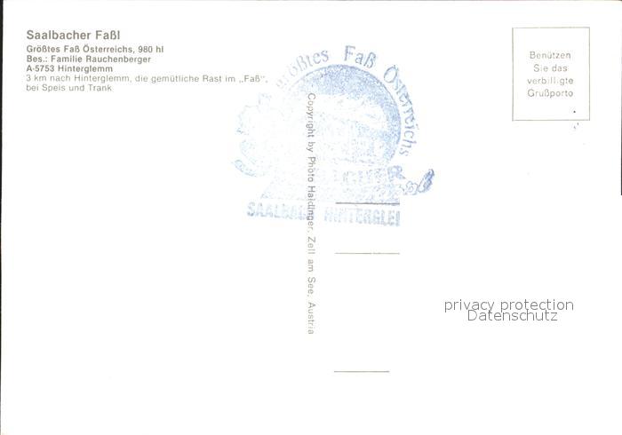 72309444 Hinterglemm Saalbach Saalbacher Fassl das groesste Fass oesterreichs postalisch nicht gelaufen Erhaltung siehe scans KatCode: 11390