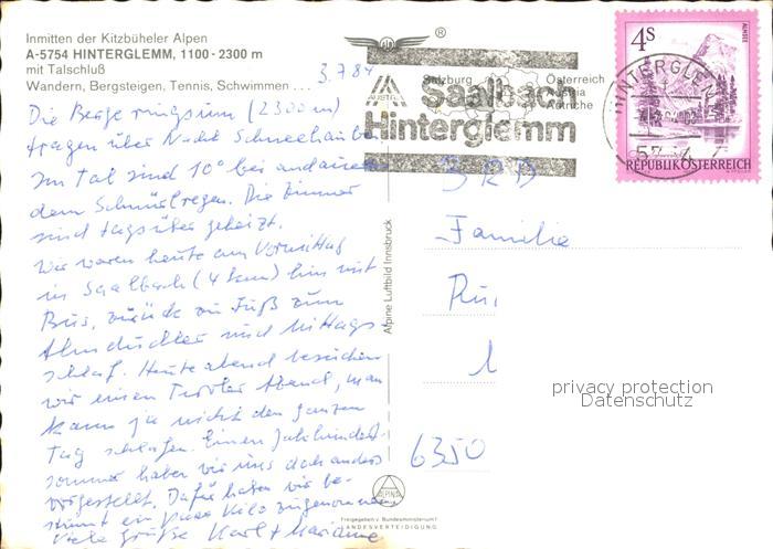 72076785 alte Postkarte Hinterglemm Saalbach Talschluss Fliegeraufnahme postalisch gelaufen Erhaltung siehe scans KatCode: 11390