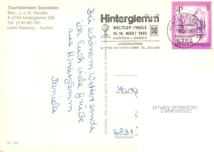 73590890 alte Postkarte Hinterglemm Saalbach Touristenheim Sonnleiten postalisch gelaufen Erhaltung siehe scans [KathaD81] KatCode: 11390