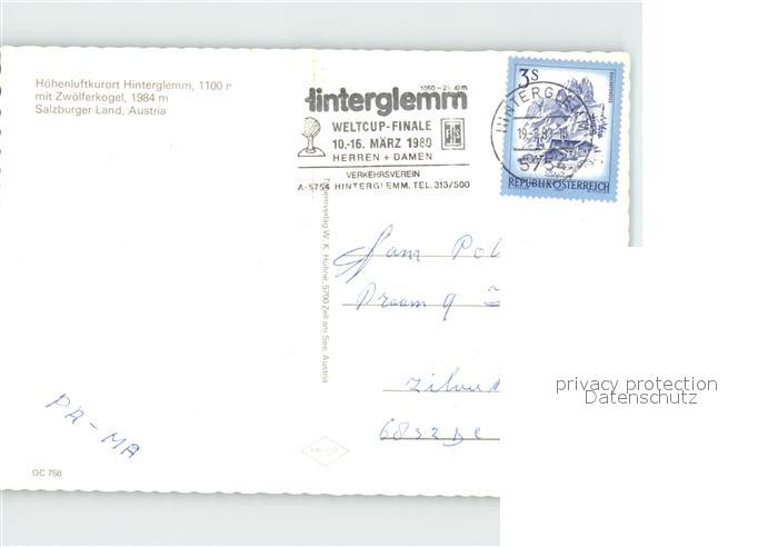 72108564 alte Postkarte Hinterglemm Saalbach Zwoelferkogel postalisch gelaufen Erhaltung siehe scans KatCode: 11390