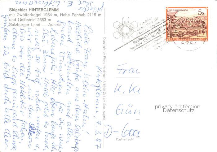 72487793 alte Postkarte Hinterglemm Saalbach Zwoelferkogel Hohe Penhab Geisstein postalisch gelaufen Erhaltung siehe scans KatCode: 11390