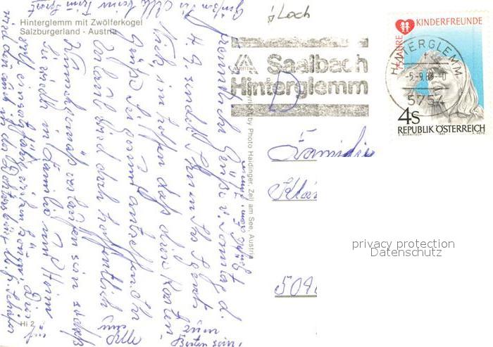 72930642 alte Postkarte Hinterglemm Saalbach Zwoelferkogel postalisch gelaufen Erhaltung siehe scans [NatalD47] KatCode: 11390