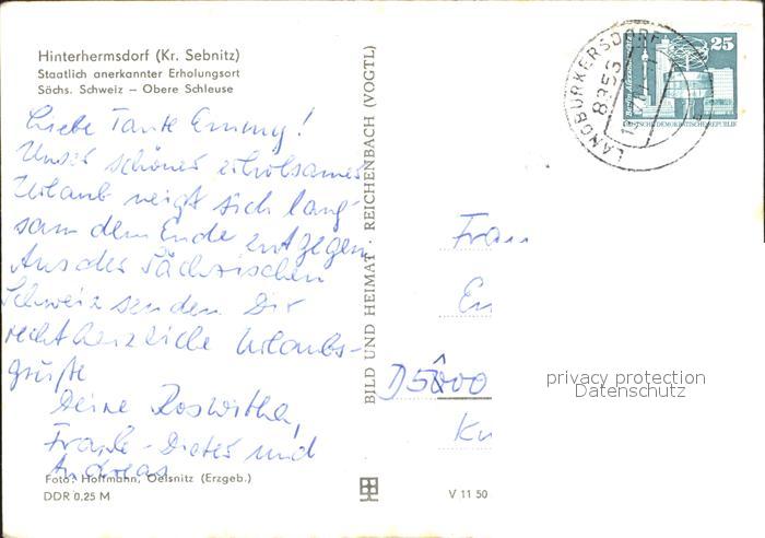72200981 alte Postkarte Hinterhermsdorf Obere Schleuse postalisch gelaufen Erhaltung siehe scans KatCode: 11110014287370