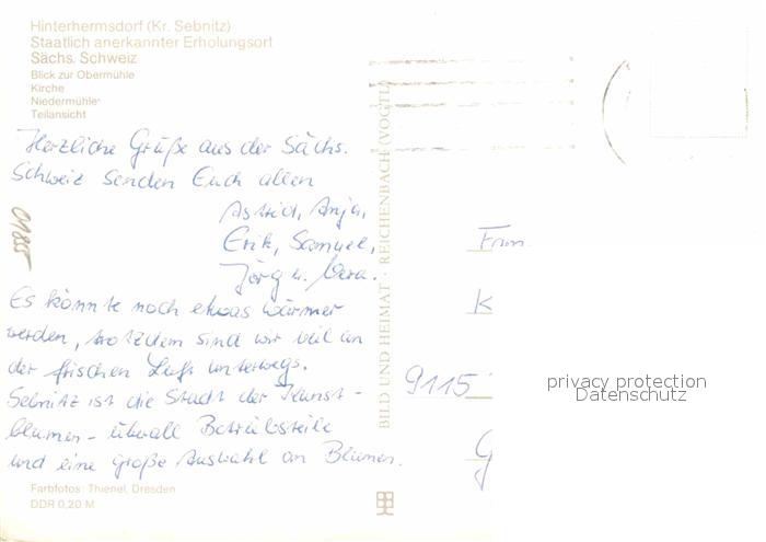 72630399 alte Postkarte Hinterhermsdorf Obermuehle Niedermuehle postalisch gelaufen Erhaltung siehe scans [LiesaD40] KatCode: 11110014287370