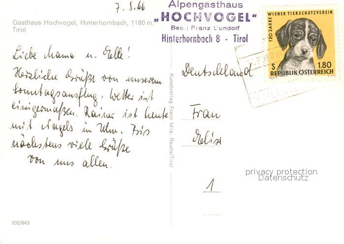 73093798 alte Postkarte Hinterhornbach Gasthaus Hochvogel postalisch gelaufen Erhaltung siehe scans [KathaD81] KatCode: 11390331070815