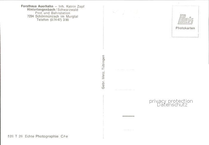 41801323 Hinterlangenbach Baiersbronn Forsthaus Auerhahn postalisch nicht gelaufen Erhaltung siehe scans KatCode: 11110008237004