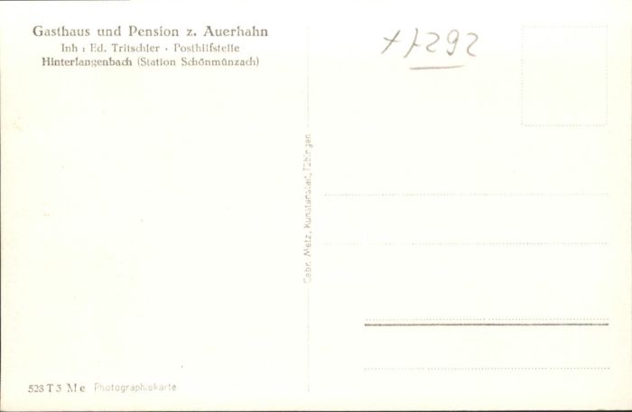 40762334 Hinterlangenbach Baiersbronn Gasthaus Pension Auerhahn KatCode 11110008237004