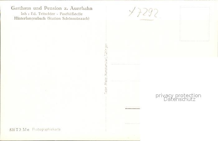 41768386 Hinterlangenbach Baiersbronn Gasthaus Pension zum Auerhahn im Murgtal postalisch nicht gelaufen Erhaltung siehe scans KatCode: 11110008237004
