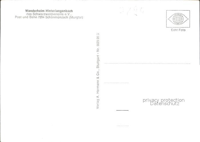 72010865 Hinterlangenbach Baiersbronn Wanderheim postalisch nicht gelaufen Erhaltung siehe scans KatCode: 11110008237004