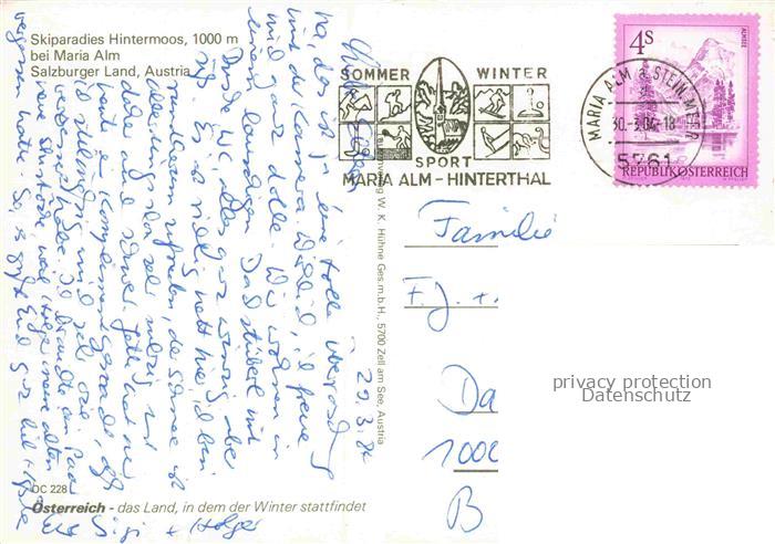 74154814 alte Postkarte Hintermoos Maria Alm Steinernen Meer Pinzgau AT Skiparadies Hintermoos Panorama postalisch gelaufen Erhaltung siehe scans [WerneD78] KatCode: 11390322050612