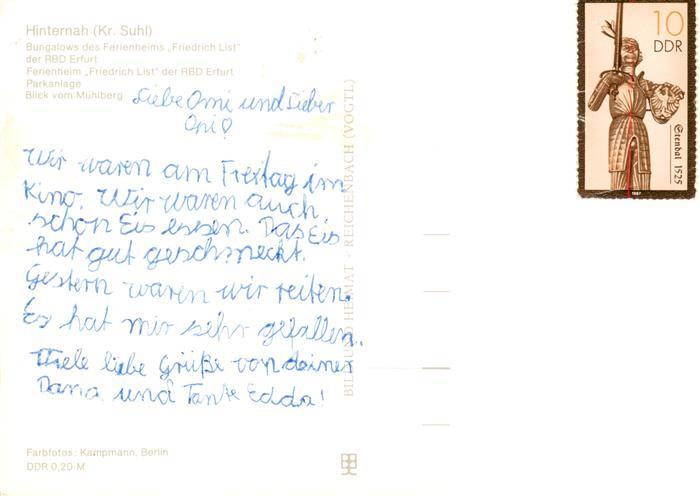 73907994 Hinternah Bungalows des Ferienheims Friedrich List Ferienheim Friedrich List Parkanlage Blick vom Muehlberg postalisch nicht gelaufen Erhaltung siehe scans [WerneD78] KatCode: 11110016069059