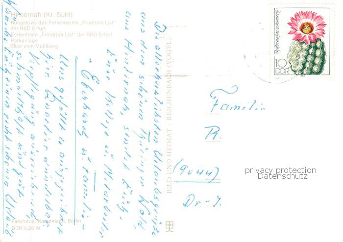 73866041 alte Postkarte Hinternah Bungalows des Ferienheims Friedrich List Parkanlage Blick vom Muehlberg postalisch gelaufen Erhaltung siehe scans [WerneD78] KatCode: 11110016069059