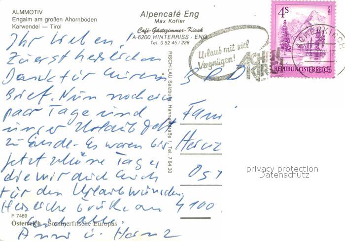 72654214 alte Postkarte Hinterriss Tirol Alpencafe Engalm am Grossen Ahornboden postalisch gelaufen Erhaltung siehe scans [WerneD78] KatCode: 11390335070936