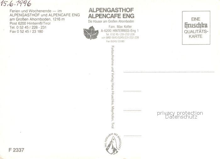 73033387 Hinterriss Tirol Alpengasthof-Alpencafe Eng postalisch nicht gelaufen Erhaltung siehe scans [PaolaD17] KatCode: 11390335070936