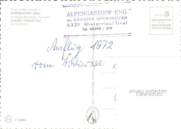72234510 Hinterriss Tirol Alpengasthof Eng postalisch nicht gelaufen Erhaltung siehe scans KatCode: 11390335070936
