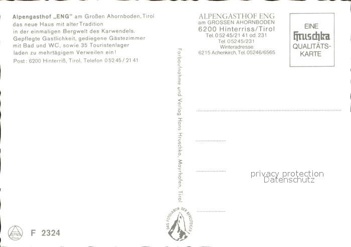 72072075 Hinterriss Tirol Alpengasthof Eng postalisch nicht gelaufen Erhaltung siehe scans KatCode: 11390335070936