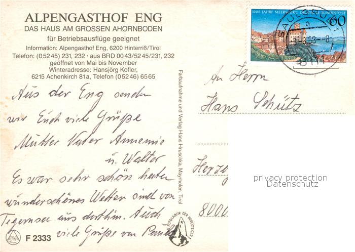 12973180 alte Postkarte Hinterriss Tirol Alpengasthof Eng postalisch gelaufen Erhaltung siehe scans [NatalD47] KatCode: 11390335070936