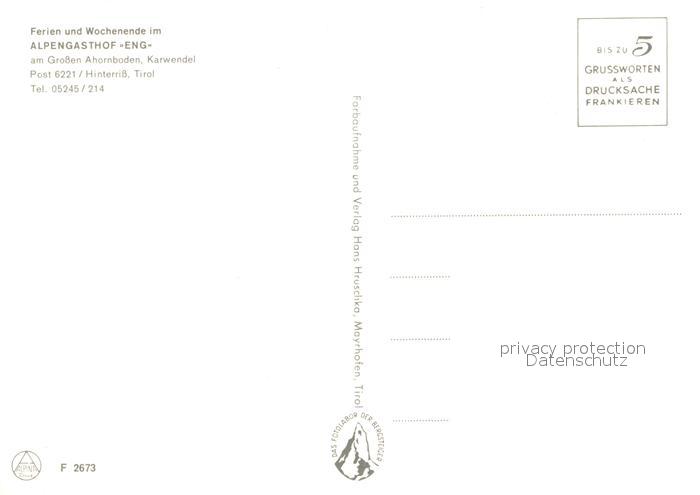 73226164 Hinterriss Tirol Alpengasthof Eng postalisch nicht gelaufen Erhaltung siehe scans [KathaD81] KatCode: 11390335070936