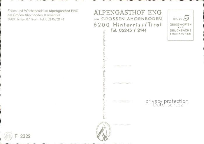 71899282 Hinterriss Tirol Alpengasthof Eng am Grossen Ahornboden postalisch nicht gelaufen Erhaltung siehe scans KatCode: 11390335070936