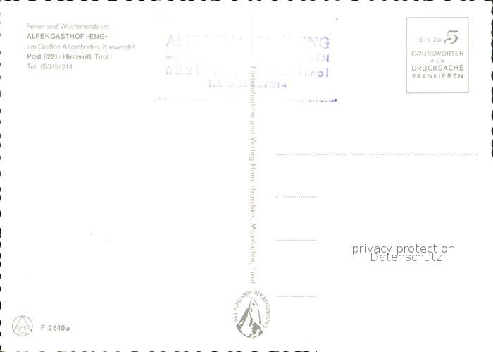 71907410 Hinterriss Tirol Alpengasthof Eng Grosse Ahornboden postalisch nicht gelaufen Erhaltung siehe scans KatCode: 11390335070936