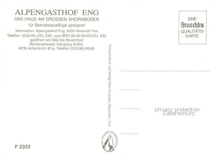 73360778 Hinterriss Tirol Alpengasthof Eng Kasalm postalisch nicht gelaufen Erhaltung siehe scans [WerneD78] KatCode: 11390335070936