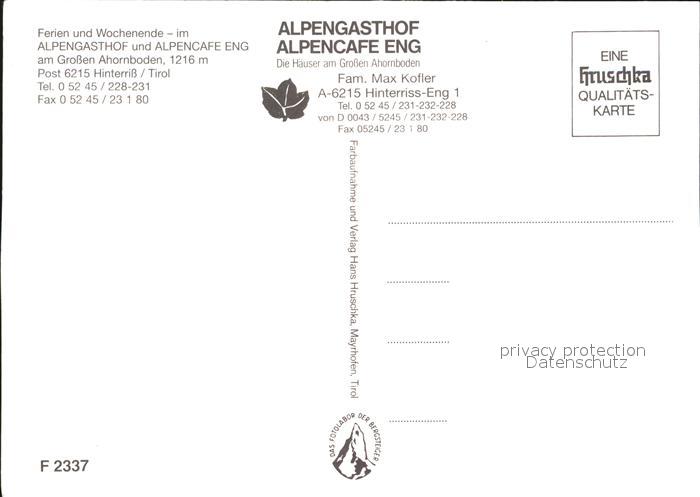 12558000 Hinterriss Tirol Alpengasthof und Alpencafe Eng Terrasse Speckalm Gr Ahornboden Wegekreuz postalisch nicht gelaufen Erhaltung siehe scans [WerneD78] KatCode: 11390335070936