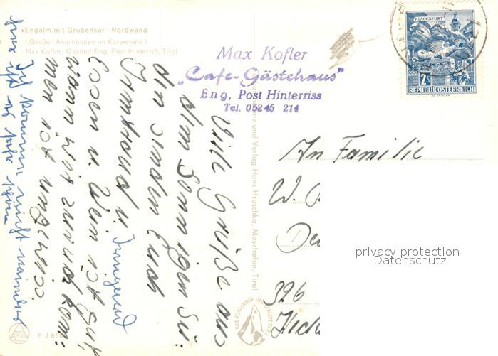 73295907 alte Postkarte Hinterriss Tirol Engalm mit Grubenkar Nordwand postalisch gelaufen Erhaltung siehe scans [WerneD78] KatCode: 11390335070936