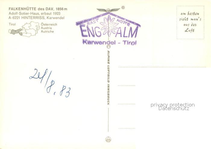 73645287 Hinterriss Tirol Falkenhuette Karwendelgebirge Fliegeraufnahme postalisch nicht gelaufen Erhaltung siehe scans [FriedD77] KatCode: 11390335070936