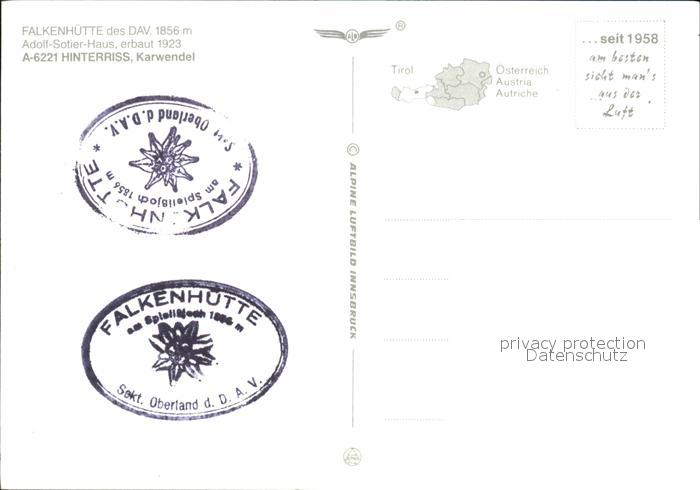 72547751 Hinterriss Tirol Fliegeraufnahme Falkenhuette postalisch nicht gelaufen Erhaltung siehe scans [LiesaD40 kv019box] KatCode: 11390335070936