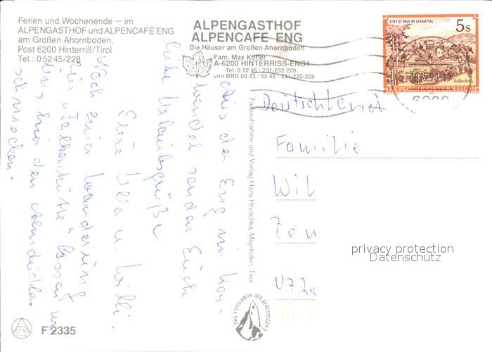 71908982 alte Postkarte Hinterriss Tirol Gr Ahornboden Eng Alpengasthof postalisch gelaufen KatCode: 11390335070936