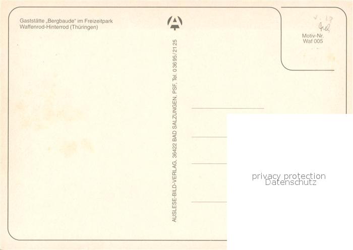 73645796 Hinterrod Waffenrod Gaststaette Bergbaude im Freizeitpark postalisch nicht gelaufen Erhaltung siehe scans [FriedD77] KatCode: 11110016069012