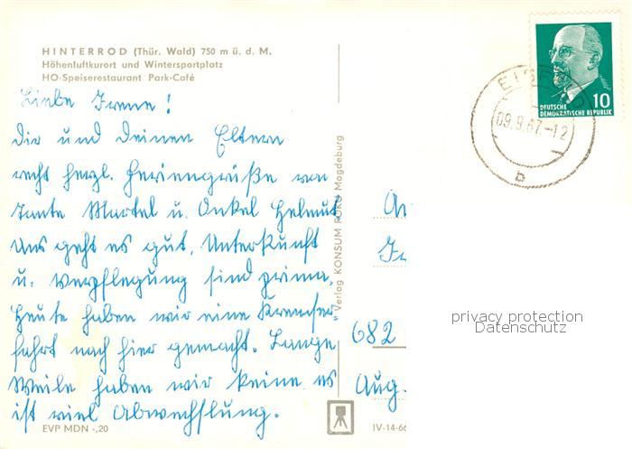 73852569 alte Postkarte Hinterrod Waffenrod HO Restaurant Park-Cafe postalisch gelaufen Erhaltung siehe scans [FriedD77] KatCode: 11110016069012