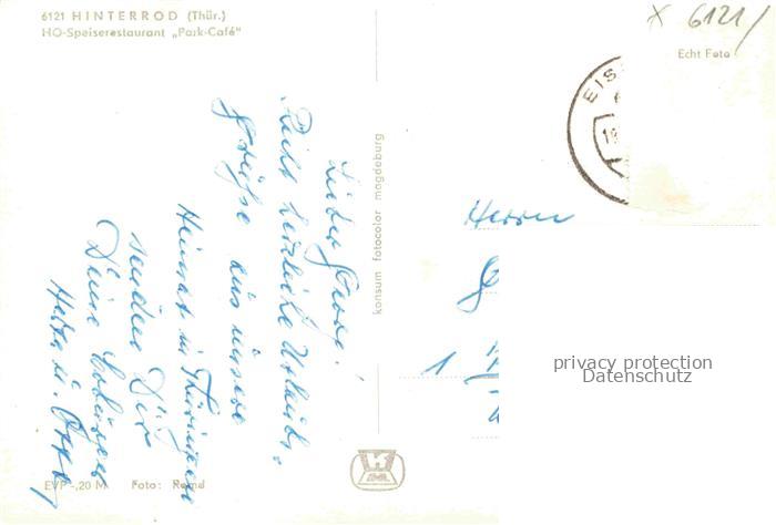 74016921 alte Postkarte Hinterrod Waffenrod HO Speiserestaurant Park Cafe postalisch gelaufen Erhaltung siehe scans [WerneD78] KatCode: 11110016069012