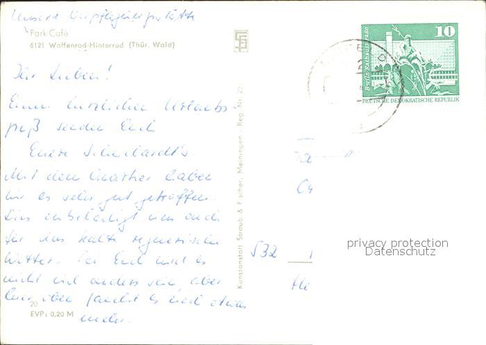 72069654 alte Postkarte Hinterrod Waffenrod Park Cafe Thueringer Wald postalisch gelaufen Erhaltung siehe scans KatCode: 11110016069012
