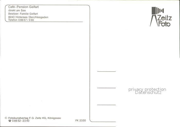 71908720 Hintersee Berchtesgaden Cafe Pension Gelfart postalisch nicht gelaufen Erhaltung siehe scans KatCode: 11110009172129