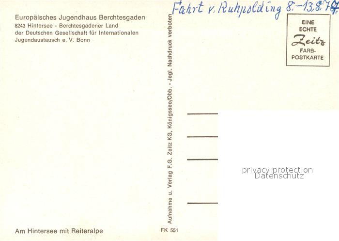 73105538 Hintersee Berchtesgaden Europaeisches Jugendhaus Berchtesgaden postalisch nicht gelaufen Erhaltung siehe scans [WerneD78] KatCode: 11110009172129