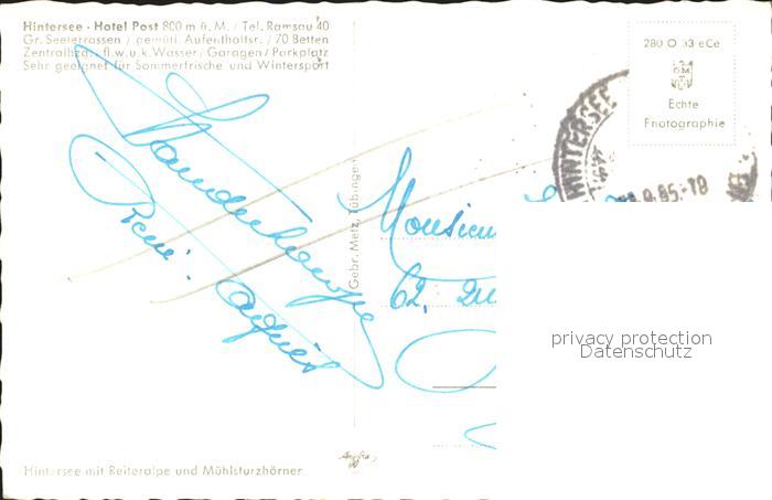 72349985 alte Postkarte Hintersee Berchtesgaden Hotel Post am See Berchtesgadener Alpen postalisch gelaufen Erhaltung siehe scans KatCode: 11110009172129