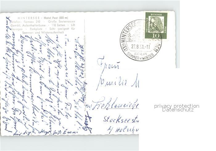 72113101 alte Postkarte Hintersee Berchtesgaden Hotel Post Reiteralpe postalisch gelaufen Erhaltung siehe scans KatCode: 11110009172129