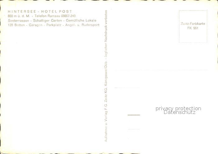 72504477 Hintersee Berchtesgaden Hotel Post postalisch nicht gelaufen Erhaltung siehe scans KatCode: 11110009172129