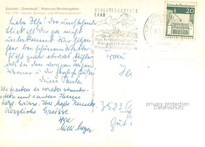 73784217 alte Postkarte Hintersee Berchtesgaden Seehotel Gamsbock postalisch gelaufen Erhaltung siehe scans [WerneD78] KatCode: 11110009172129