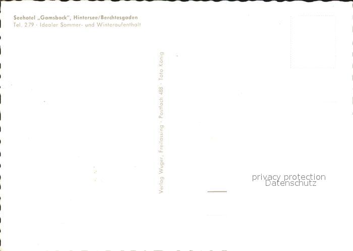 72533574 Hintersee Berchtesgaden Seehotel Gamsbock postalisch nicht gelaufen Erhaltung siehe scans [WerneD78 kt116box] KatCode: 11110009172129