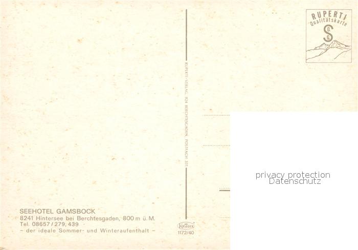 72947151 Hintersee Berchtesgaden Seehotel Gamsbock Partie am See postalisch nicht gelaufen Erhaltung siehe scans [LiesaD40] KatCode: 11110009172129