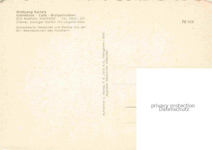 74100214 Hintersee Ramsau Berchtesgaden Oberbayern Bayern Gaestehaus Wolfgang Bartels Restaurant Terrasse postalisch nicht gelaufen Erhaltung siehe scans [FriedD77] KatCode: 11110009172129